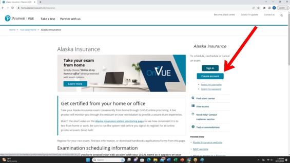 If it is not convenient for you to get to one of the Pearson VUE testing centers, you can take your Alaska insurance licensing exam conveniently from home through OnVUE online proctoring. A live proctor will monitor you through the webcam on your workstation to provide a secure exam experience.