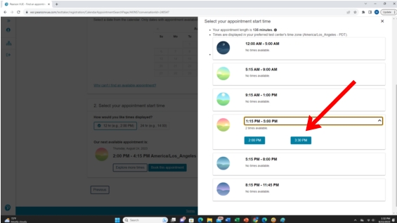 Step 6. Select the Testing Center you wish to test at, followed by the date and time.