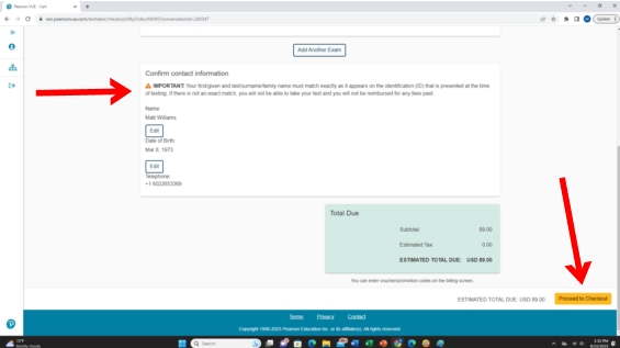 Step 7. Ensure that your first and last name match EXACTLY what is on your government issued ID and then pay for your exam.